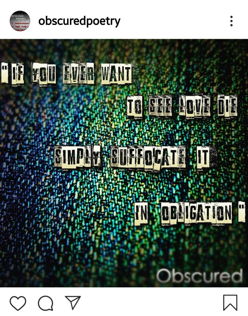Founded by Joe Wedge, Obscured Poetry has set out on a mission to create Art that doesn’t just inspire life, but changes our way of life altogether. Obscured Poetry is dedicated to creating art, with the sole intent of pushing conceptual boundries and creating positive change in the world and communities in which we live.